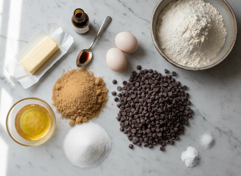 For the rich base, you’ll use 1 cup of butter, melted and cooled slightly. Unsalted butter is preferred so you can control the salt content, but salted will work; just reduce the added salt. You’ll combine that with 1½ cups of packed brown sugar and ¾ cup of white sugar. The blend of sugars is key for chewiness and flavor. Two large eggs provide structure, and 1 tablespoon of vanilla extract adds that classic warmth. Feel free to use good quality vanilla bean paste for an extra boost of flavor.