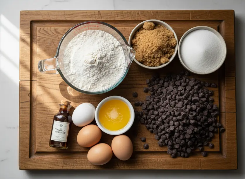 Large eggs bind everything together and add richness. Don’t skimp on the vanilla extract; it really enhances the cookie flavor. Finally, for the star, grab your favorite chocolate chips! Semi-sweet or dark are my usual picks, but milk chocolate works if you prefer a sweeter bar. You can even mix different kinds. Occasionally, I toss in some toffee bits for an extra layer of flavor and crunch, but they are completely optional.