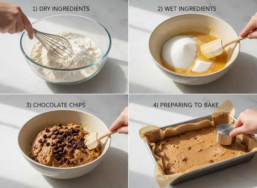 Making these Chocolate Chip Cookie Bars is incredibly straightforward. Just follow these simple steps for a perfect batch every time.