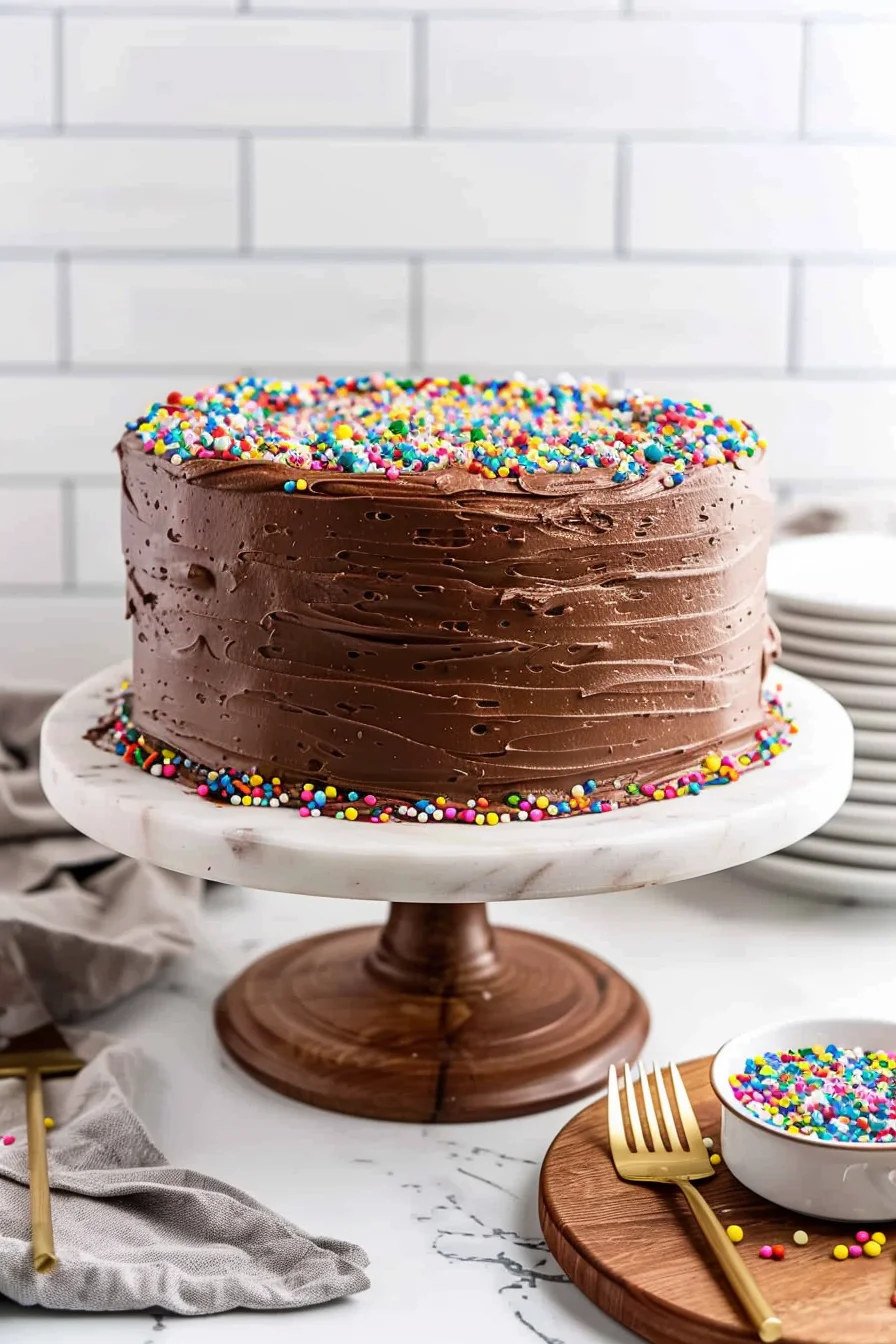 The Ultimate Moist Yellow Cake with Chocolate Sour Cream Frosting