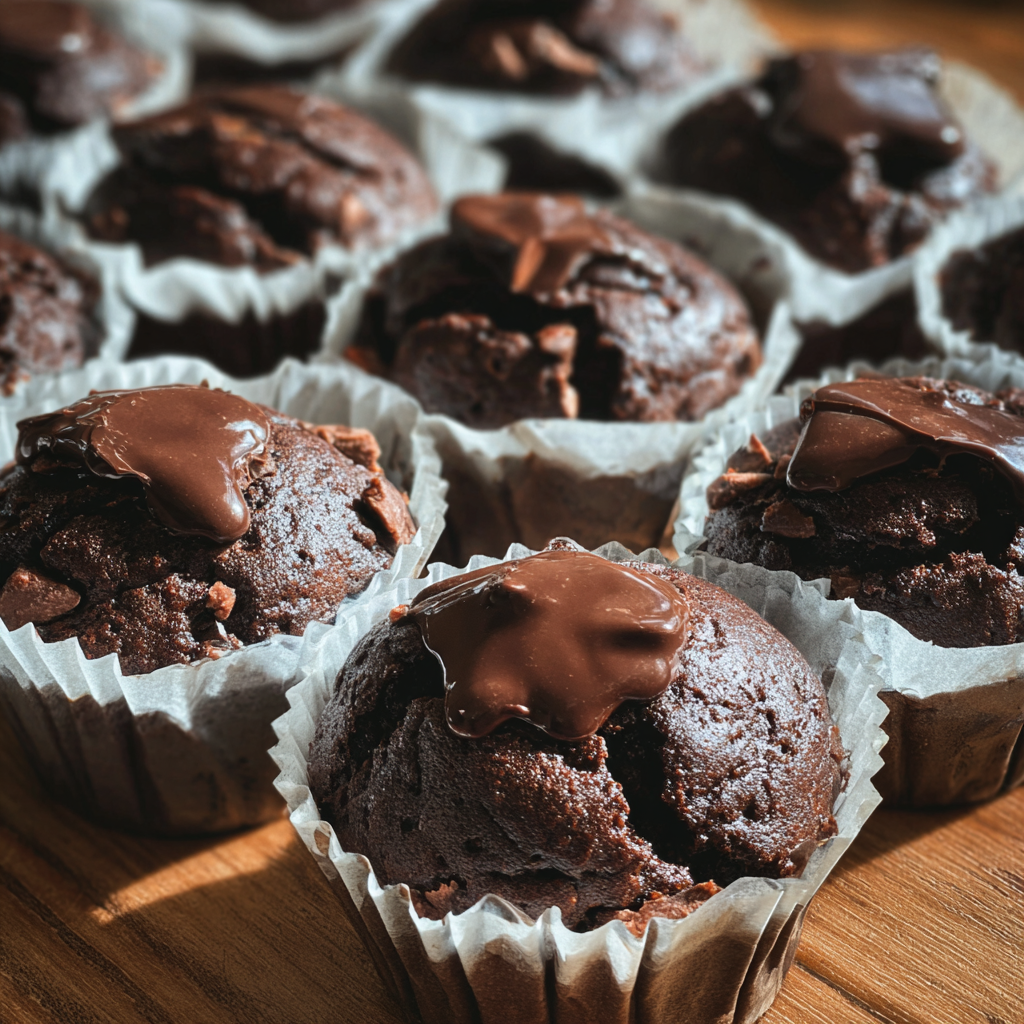 Double Chocolate Muffins deliver pure chocolate indulgence in convenient, portable form that satisfies cravings for maximum chocolate flavor. The combination of cocoa powder, generous chocolate chunks, and silky ganache filling creates layers of chocolate richness that chocolate lovers dream about. Whether you’re treating yourself to luxurious breakfast, preparing impressive brunch offerings, or creating special desserts for celebrations, these bakery-quality muffins prove that homemade chocolate treats truly are worth the effort—especially when ganache oozes from the center with every delicious bite.