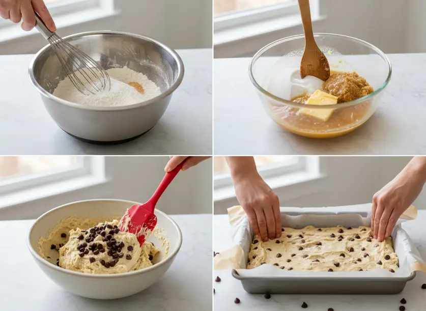 Making these cookie bars is incredibly straightforward. Just follow these simple steps, and you’ll have a warm, chewy treat in no time.