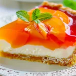 A vintage-inspired Creamy Peach Jello Pie that combines a silky cream cheese bottom layer with a vibrant peach-vanilla glaze. Perfect for potlucks and summer BBQs!