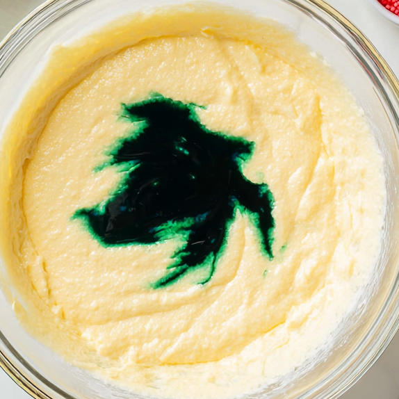- Add Flavor and Color: Pour in the vanilla extract and add the green food coloring. Start with about 5-8 drops of liquid color, then beat until the color is evenly distributed. Adjust as needed until you achieve a vibrant, “Grinchy” green.