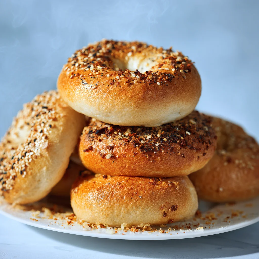 If using toppings like Everything Bagel seasoning, dip the damp bagels into the seeds immediately after boiling. Transfer to the baking sheet and bake at 425°F for 20-25 minutes.