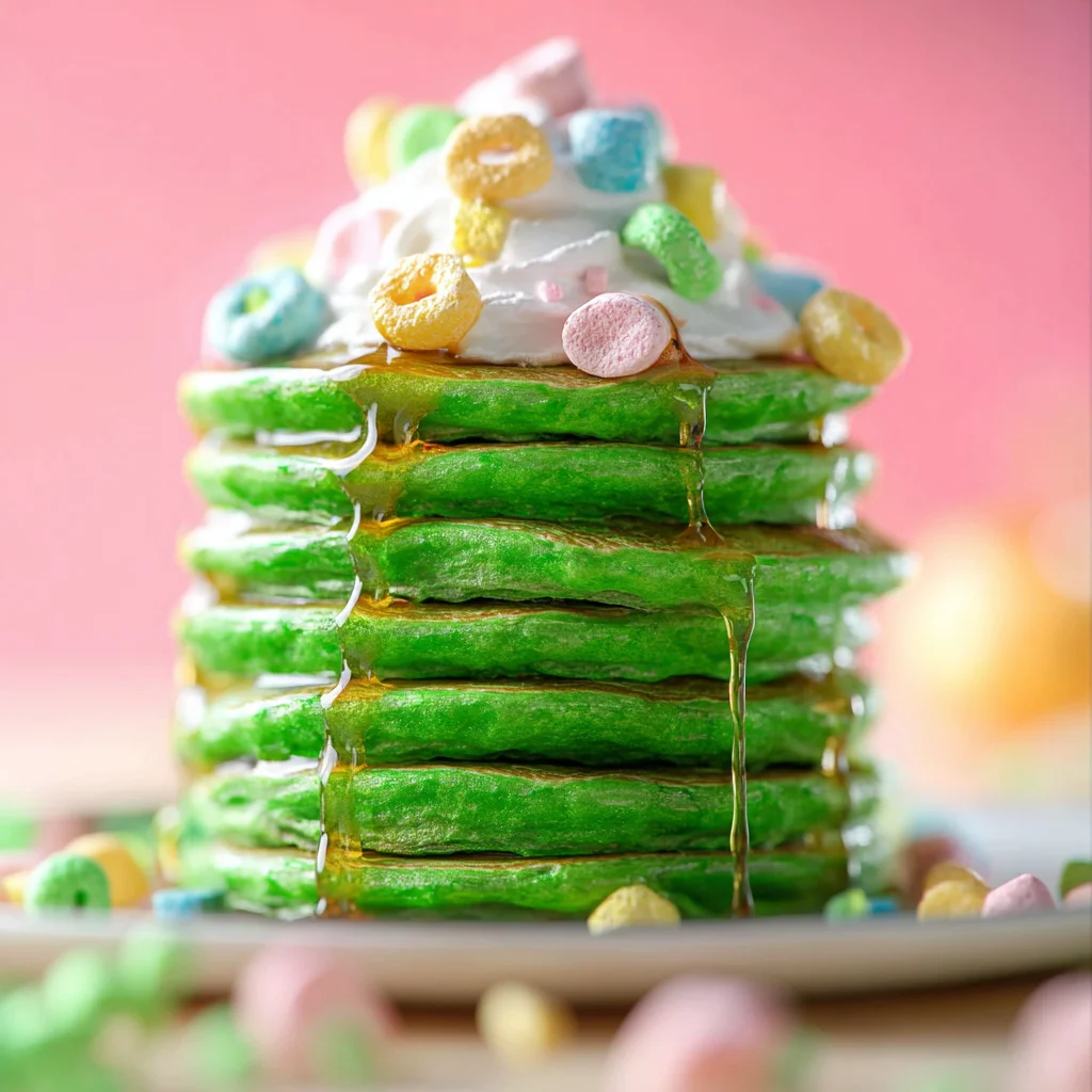 To keep the theme going, top your green pancakes with a generous dollop of whipped cream and a sprinkle of Lucky Charms marshmallows. The colorful marshmallows look like “treasures” hidden in the green. Of course, you can never go wrong with high-quality maple syrup and a pat of salted Irish butter (like Kerrygold) for that authentic touch. For a balanced meal, serve alongside crispy bacon or savory sausage to cut through the sweetness.