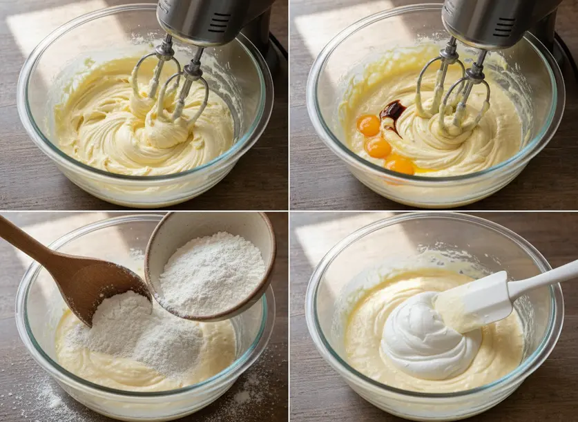 - Beat in the egg yolks one at a time, ensuring each yolk is fully incorporated into the batter before you add the next. Afterward, gently stir in the pure vanilla extract.