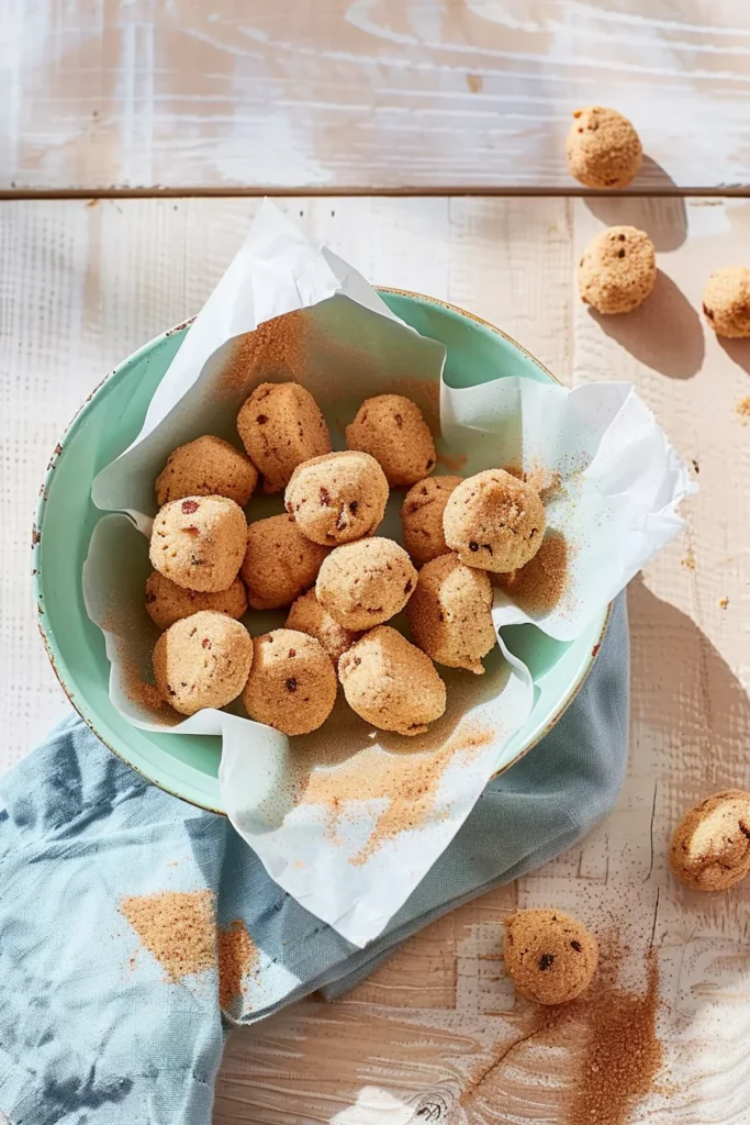 - Shape and Coat: Take each ball and gently roll it between your palms to create an oblong, oval shape. Immediately roll the shape in a bowl of ground cinnamon until fully coated.