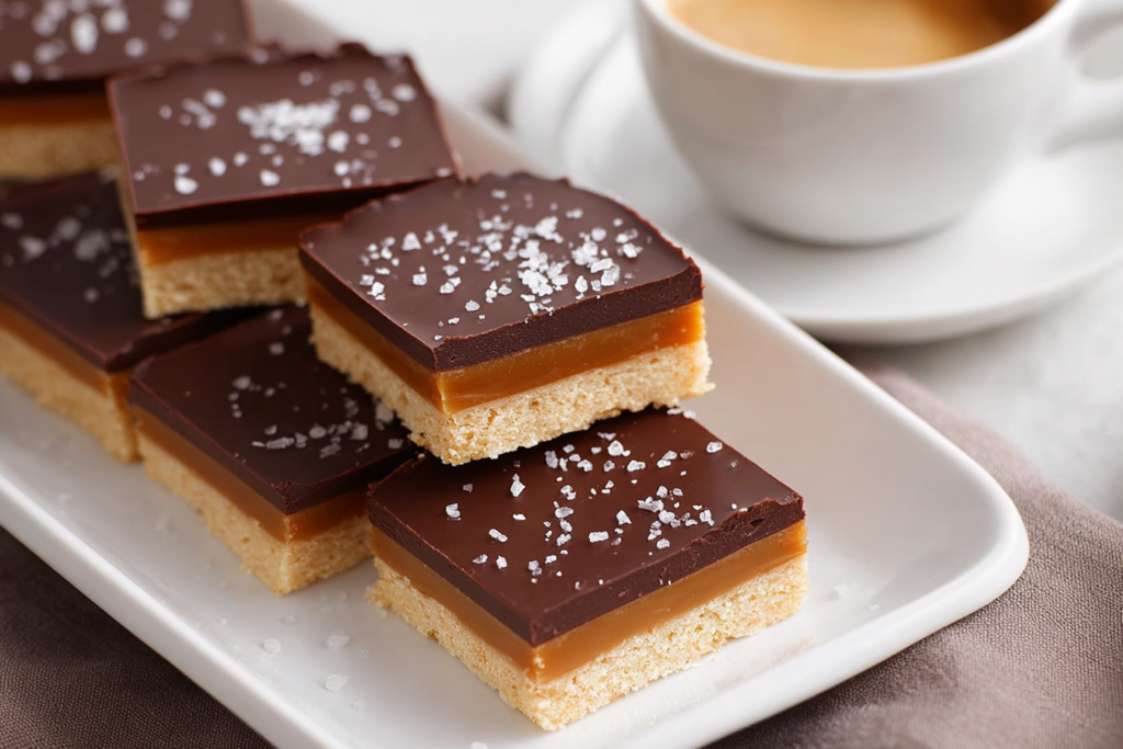 Classic caramel shortbread bars with a buttery shortbread crust, thick homemade caramel layer, and smooth chocolate topping. Rich, indulgent, and perfectly balanced with a hint of sea salt — these bakery-style bars are a guaranteed crowd favorite.