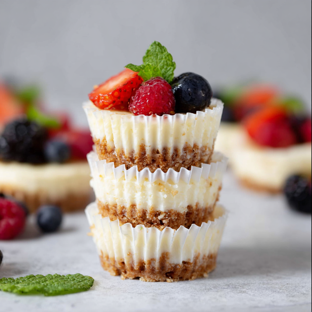 Having tested this recipe over nine times, Sophie has perfected the ratio of 0% Greek yogurt to cream cheese, ensuring a triumph of texture that is both light and decadent. These aren’t just “diet” desserts; they are a remarkable treat that tastes like a fresh, gourmet bakery item. Whether you are hosting a family gathering or looking for a practical way to meal prep high-protein snacks for the week, these mini cheesecakes are a successful choice. By using a muffin tin for perfect portions, this recipe is helpful, simple, and absolutely stunning to serve.
