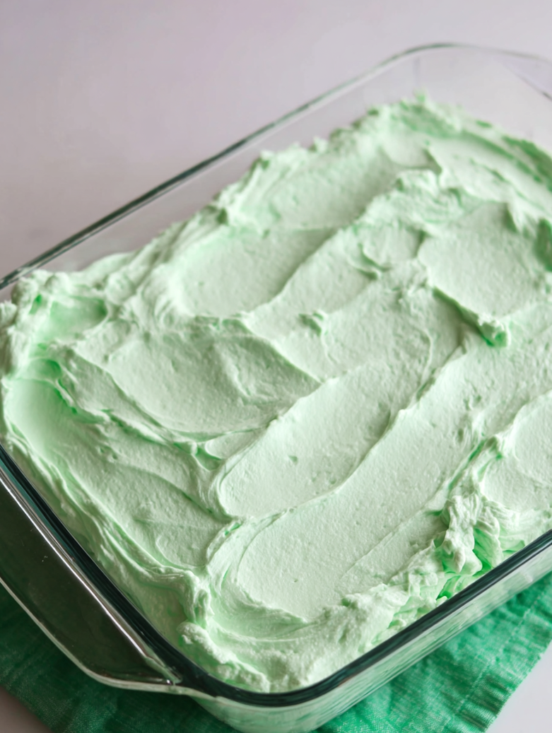 3. The Bake: Pour the smooth, green batter into your prepared dish. Bake for 25-30 minutes. You’ll know it’s done when the edges slightly pull away from the pan and a toothpick inserted into the center comes out clean. Do not overbake, as the pudding mix can make the cake dry if left in too long.
