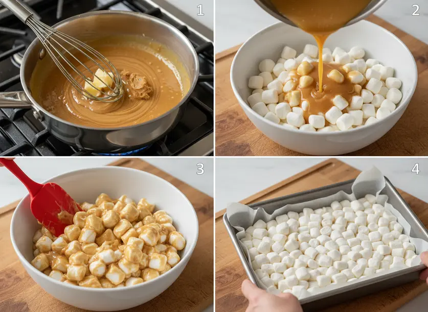 Making these Peanut Butter Butterscotch Marshmallow Squares is super straightforward. Just follow these steps, and you’ll have a delicious treat ready to chill in no time.