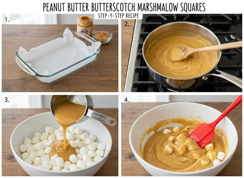 - **Combine with cold marshmallows:** Once your butterscotch and peanut butter mixture is smooth, remove the saucepan from the heat. Quickly pour the warm mixture over the cold marshmallows in a large, heat-safe mixing bowl. The contrast in temperatures is important here.