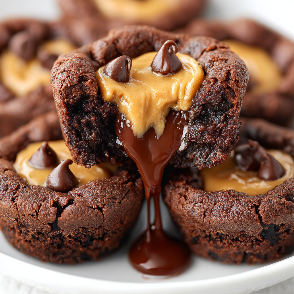 Each bite starts with a deep chocolate brownie base, soft and slightly gooey in the center, then finishes with a smooth peanut butter filling that melts gently into the warm chocolate. The result is a dessert that looks impressive but is surprisingly simple to make at home.