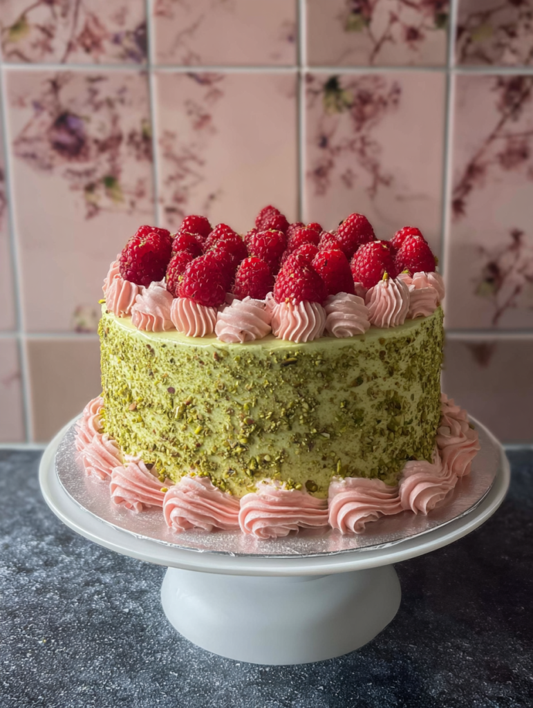 I grew up between two worlds—Moroccan warmth and American comfort—shaped by the scent of cinnamon and orange blossom water drifting from my dad’s kitchen and the buttery aroma of classic chocolate chip cookies cooling in my mom’s oven. That blend of cultures is where my love for baking first took root. This pistachio and raspberry cake represents everything I love about celebration baking—the drama of a tall layer cake, the satisfaction of Swiss meringue buttercream, and flavor combinations that feel both sophisticated and comforting. The sweet milk soak is a game-changer I learned from Latin American tres leches cakes—it keeps the cake impossibly moist for days. After perfecting this recipe through multiple tests, I can promise you’ll have a stunning cake that tastes as incredible as it looks.