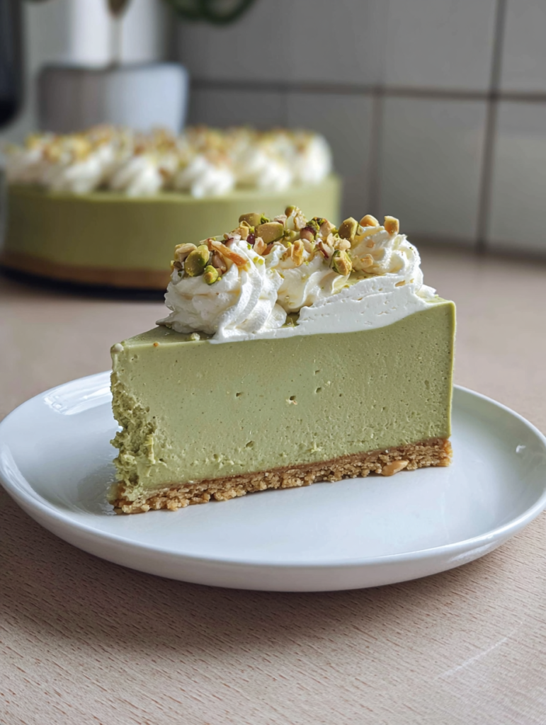 I grew up between two worlds—Moroccan warmth and American comfort—shaped by the scent of cinnamon and orange blossom water drifting from my dad’s kitchen and the buttery aroma of classic chocolate chip cookies cooling in my mom’s oven. That blend of cultures is where my love for baking first took root. Mastering cheesecake felt like a rite of passage in my baking journey—the patient overnight chill, the gentle water bath, the anticipation of that first perfect slice. This pistachio version combines the classic elegance of New York cheesecake with the sophisticated nuttiness of pistachios, creating a dessert that’s both familiar and extraordinary. The key is not rushing any step, especially that overnight set in the fridge.