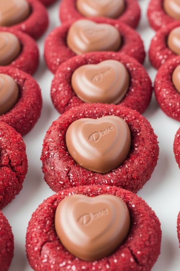 When it comes to expressing love through baking, few things are as iconic as the combination of crimson-hued red velvet and rich chocolate. These Red Velvet Chocolate Heart Blossom Cookies are a stunning evolution of the classic peanut butter blossom we all grew up with. By swapping the traditional dough for a soft, cocoa-infused red velvet base and replacing the standard kiss with a sophisticated Dove Chocolate Heart, you create a dessert that is as beautiful as it is delicious. Whether you are prepping for a school Valentine’s party, a Galentine’s brunch, or a romantic dinner for two, these cookies deliver a professional bakery-style result with surprisingly little effort. The striking contrast between the bright red sugar crust and the silky chocolate center makes them an absolute showstopper on any dessert platter.