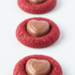 A blossom cookie is characterized by a soft cookie ball that is rolled in sugar, baked until just set, and topped with a solid chocolate candy while still warm. This specific version utilizes a red velvet base. Traditionally, red velvet was a chocolate cake that took on a reddish tint due to the reaction between non-alkalized cocoa powder and acidic ingredients like buttermilk or vinegar. In this modern cookie adaptation, we achieve that signature deep red color using food coloring, paired with a hint of cocoa powder for that classic earthy undertone. The addition of a chocolate heart turns a standard cookie into a “blossom,” creating a decorative and indulgent “crown” for the treat.