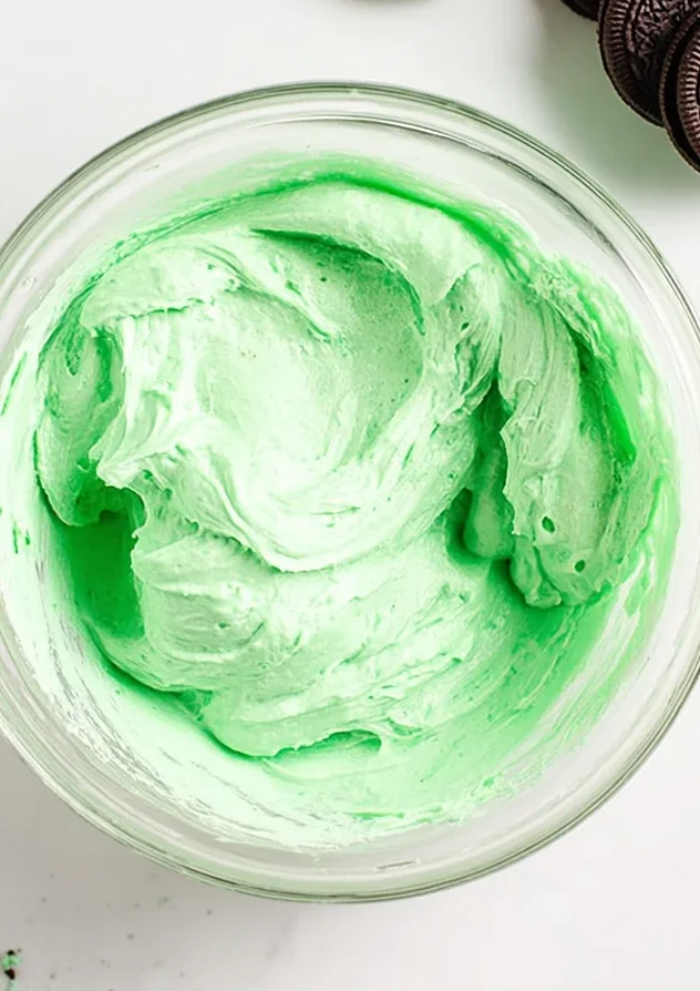 Add your vanilla or mint extract and the green food coloring. Start with 2-3 drops and fold gently with a spatula. If you want a deeper “Forest Green,” add more. Folding instead of beating at this stage ensures you don’t deflate the mousse you just worked so hard to fluff up.
