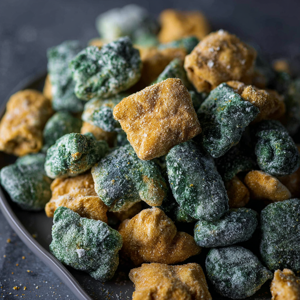 You will absolutely fall in love with this recipe because it combines nostalgia with a beautiful holiday aesthetic. First, the flavor profile of peanut butter and white chocolate (almond bark) is a crowd-pleaser that appeals to both kids and adults. Second, the visual impact of the “Green and Gold” theme makes it a standout on any dessert table or in a gift jar. Unlike traditional muddy buddies that can look a bit messy, this version uses almond bark which sets firmly, ensuring your snack stays crunchy and doesn’t melt into a clump. It’s also incredibly scalable—you can easily double or triple the batch for large school events or office gatherings.
