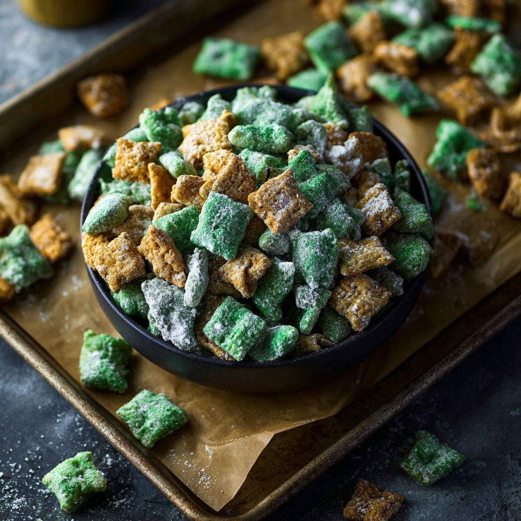 This festive St. Patrick’s Day Puppy Chow (also known as Muddy Buddies) features a lucky combination of vibrant green peanut butter-coated cereal and shimmering gold-dusted bites. It’s the perfect no-bake treat for school parties, leprechaun-themed celebrations, or a cozy holiday movie night.
