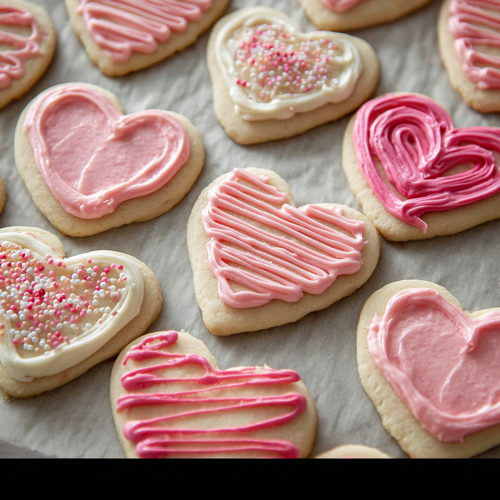 These Valentine Sugar Cookies are tender, buttery cut-out cookies with a delicate shortbread-like texture and subtle almond flavor. Made with cold butter for minimal spreading, they bake up pale and smooth—perfect for heart-shaped cookies decorated with buttercream or glossy glaze for Valentine’s Day.