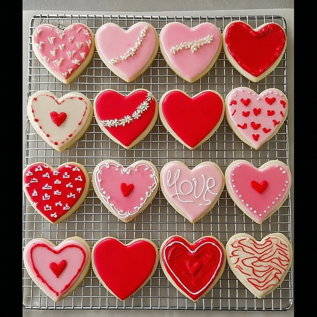 These Professional Valentine Sugar Cookies are crisp-edged, tender-centered cut-out cookies designed specifically for flawless royal icing decoration. Made with carefully measured flour, softened butter, and a touch of almond extract, they hold sharp edges while baking and provide a smooth, sturdy base for detailed piping, flooding, and painted gold accents—perfect for bakery-style Valentine’s cookies.